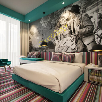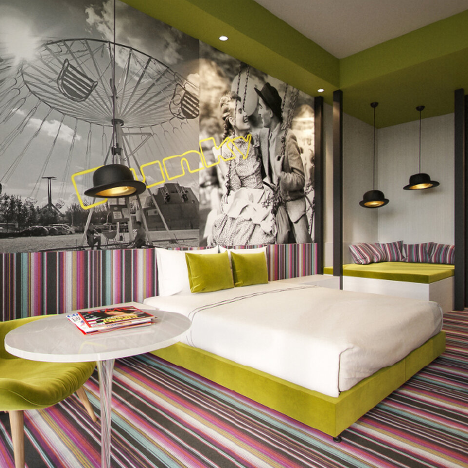 The hotel offers 96 uniquely designed rooms and suites, each with its own character and story. The interiors combine nostalgic references to Hungarian pop culture with modern technologies and a strong focus on guest comfort.