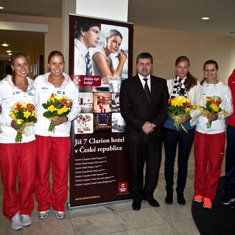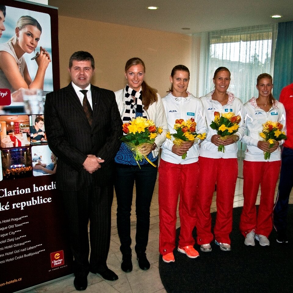 České hvězdy ženského tenisu dorazily do Clarion Congress Hotelu Ostrava. Skvěle naladěnou výpravu v čele s wimbledonskou vítězkou a současnou třetí hráčkou světa Petrou Kvitovou osobně přivítal ředitel hotelu Radim Beneš. Český fedcupový tým, o který bude personál ostravského Clarionu pečovat celý týden, se v semifinále této prestižní soutěže pod vedením kapitána Petra Pály utká s Itálií.