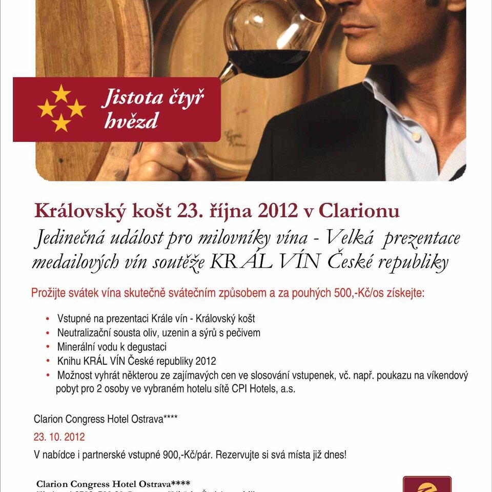 Přijměte pozvání na velkou prezentaci všech medailových vín soutěže KRÁL VÍN České republiky dne 23. října, kdy formou koštu bude v Clarion Congress Hotelu Ostrava prezentováno více než 300 vzorků nejlepších vín aktuální nabídky českých, moravských a slovenských vinařů!