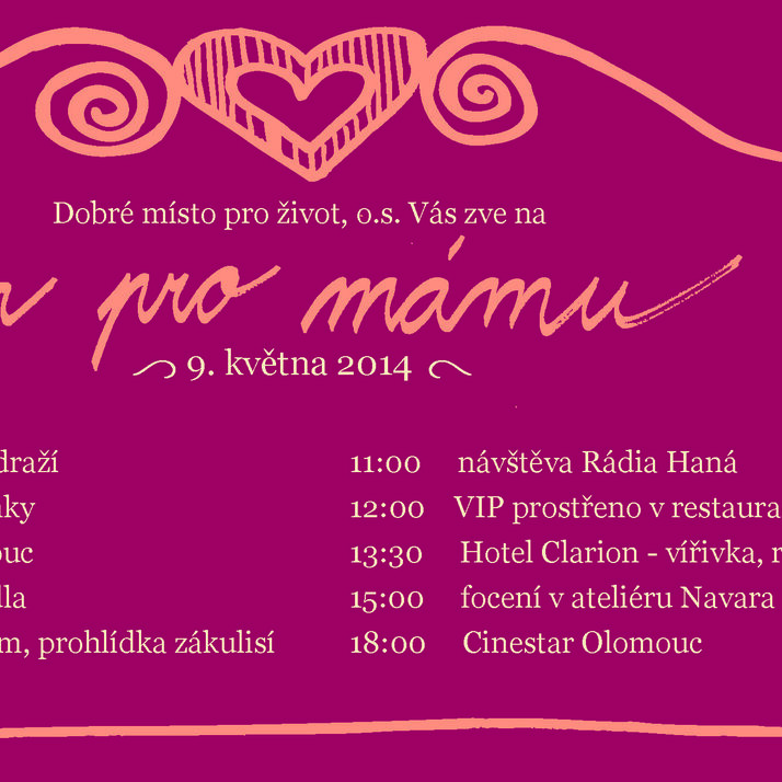 Odměnit nesobeckou péči, obětavost a dopřát jeden bezstarostný den stranou každodenních problémů, které jim osud přivál do cesty. To je cíl projektu Den pro mámu, který pořádá olomoucké sdružení Dobré místo pro život. Hlavní myšlenkou je podpořit ženy, které se starají o děti se zdravotními handicapy. Příběhy jsou různé, mají však společného jmenovatele. Představují obětavé maminky, které věnují veškerý svůj čas starostlivosti o své blízké a na péči o sebe nemají prostor ani finanční prostředky.